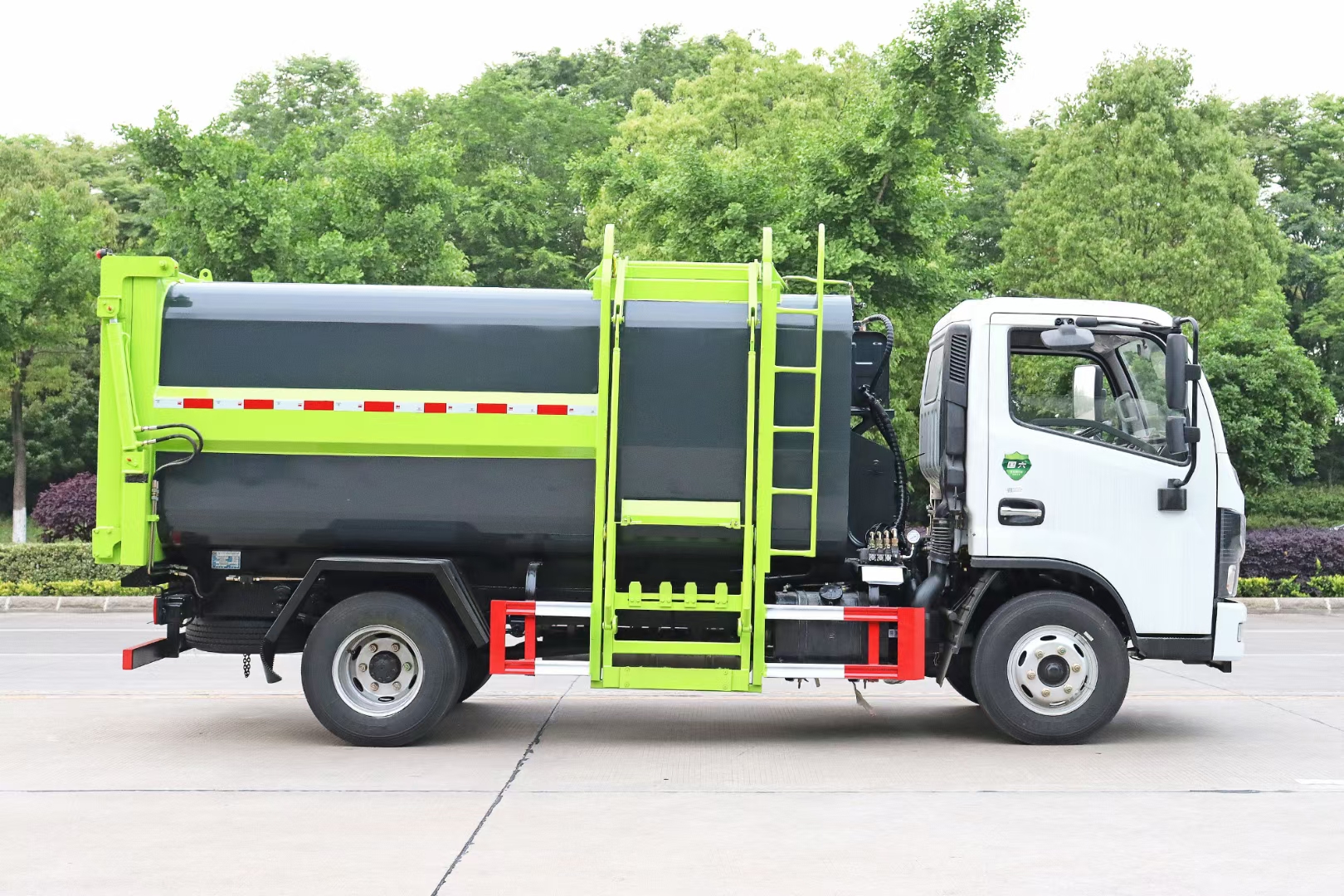 掛桶垃圾車的特點能實現一臺車與多個垃圾桶聯合作業,循環運輸,充分提高了車輛的運輸能力,特別適用于短途運輸,如環衛部門對城鎮垃圾的清理、運輸等。同時,掛桶垃圾車還可以加裝其它功能,形成其它多功能掛桶垃圾車,如:掛桶壓縮式垃圾車、掛桶式對接垃圾車等。