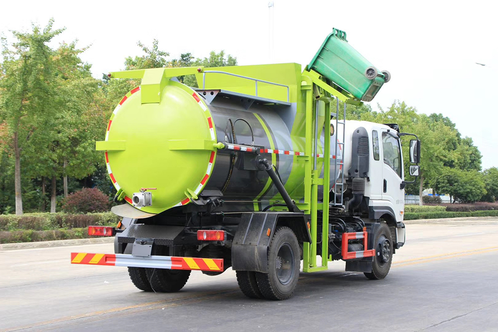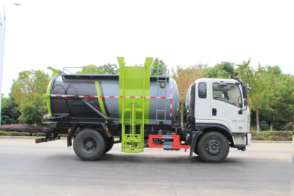 罐體采用優質碳鋼板材,罐體內部帶固液分離功能(全推推板,不銹鋼泔水分離網板),罐內加熱功能(用于嚴寒地帶防止罐內餐飲垃圾凍結凝固,采用柴油燃燒機加熱,加熱速度快效果好,可設置高低溫實現自動溫控)全液壓操作系統,工作人員操作方便,罐體舉升自卸,拉桿式掛桶提升機,可以掛120/240升垃圾桶進行作業,后蓋液壓驅動開啟、鎖緊,方便人員操作。