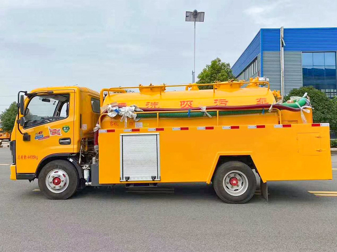 吸污部分:3.8方污罐,罐體5mmQ235優(yōu)質(zhì)碳鋼,配淄博SK-9水循環(huán)泵(北方地區(qū)可選裝威龍真空油泵),8米吸污管一根,進(jìn)氣管加過(guò)濾網(wǎng),防溢閥加高,后蓋卡扣鎖緊,前視污亮管,后尾部加裝1個(gè)力拓牌100、150mm的球閥均帶進(jìn)出口。