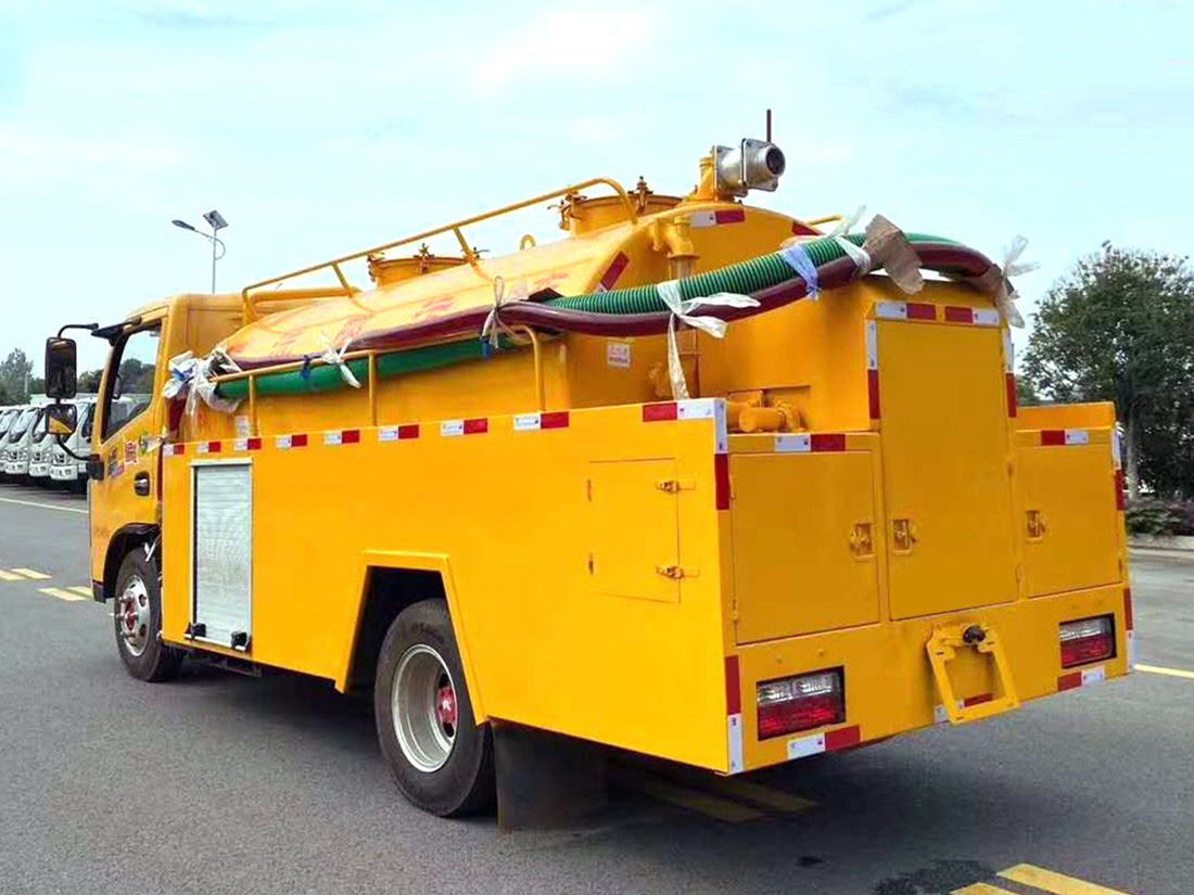 清洗部分:1.8方水箱,采用4mmQ235優(yōu)質(zhì)碳鋼板,水箱兩側(cè)消防接口進(jìn)水,工具箱一個(gè)。采用德國(guó)品浮高壓泵170升流量,24兆帕,配60米內(nèi)徑19#高壓管,10個(gè)大小不同噴頭一套, 后置式清洗卷盤(pán),帶淋管裝置(用于淋洗高壓管疏通管道過(guò)后上面殘留的污物),帶氣吹水功能(用于吹出每次高壓管工作完以后內(nèi)部殘留的水漬,防止天冷結(jié)冰影響下次使用)